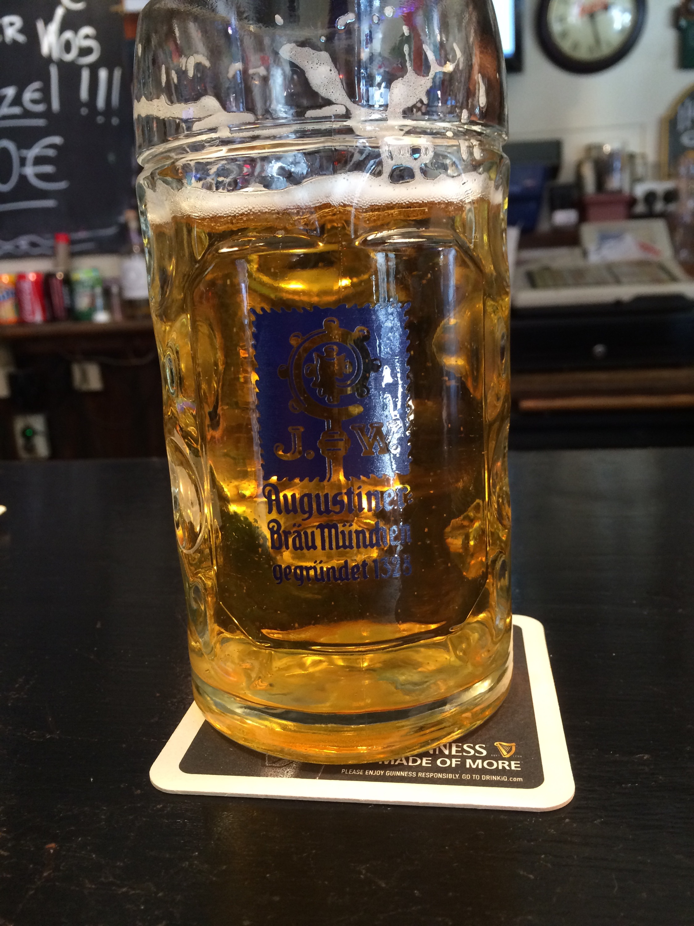 They had Augustiner Oktoberfest beer – yum! And the owner is a die-hard Green Bay Packers fan.