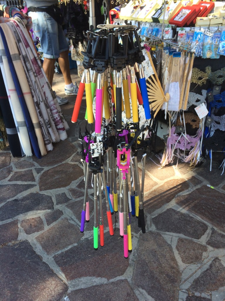 The selfie stick, that extensible cell phone holder/wand that provides a little longer picture-taking perspective, is so common in the U.S. that it’s almost been declared passe. It’s alive and well here in the European tourist areas, though. OK, on the face of it, there’s nothing wrong with a compact, collapsible tool that lets you take a better photo. I’d love to be the person who thought of it and is probably making a fortune from the idea.