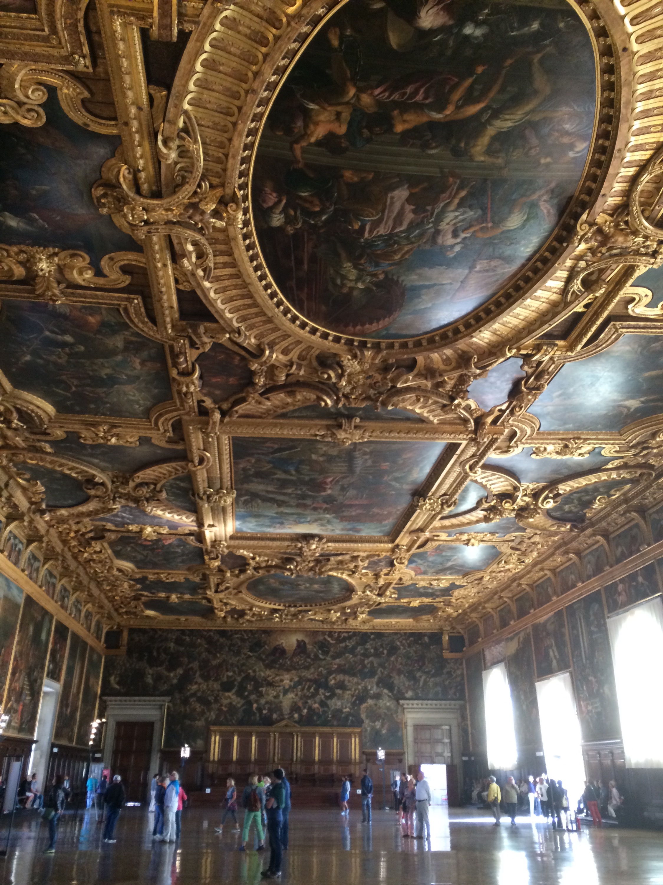I’ve passed the Doge’s Palace many times in my Venice visits and finally went in for this first time today. This was where the elected head of the Venetian Republic (the Doge) lived and where the governing councils met. A kind of White House/Capitol Hill combo. It’s smaller, of course, but makes up for it with lavish decor.