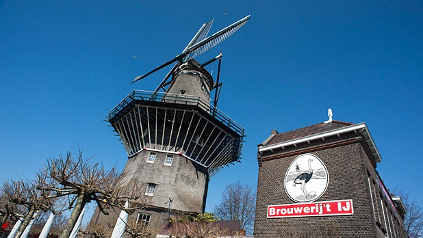 It’s located right beneath the last remaining windmill in Amsterdam, where the original brewer used to live. Take the #22 bus from Centraal Station to get here.