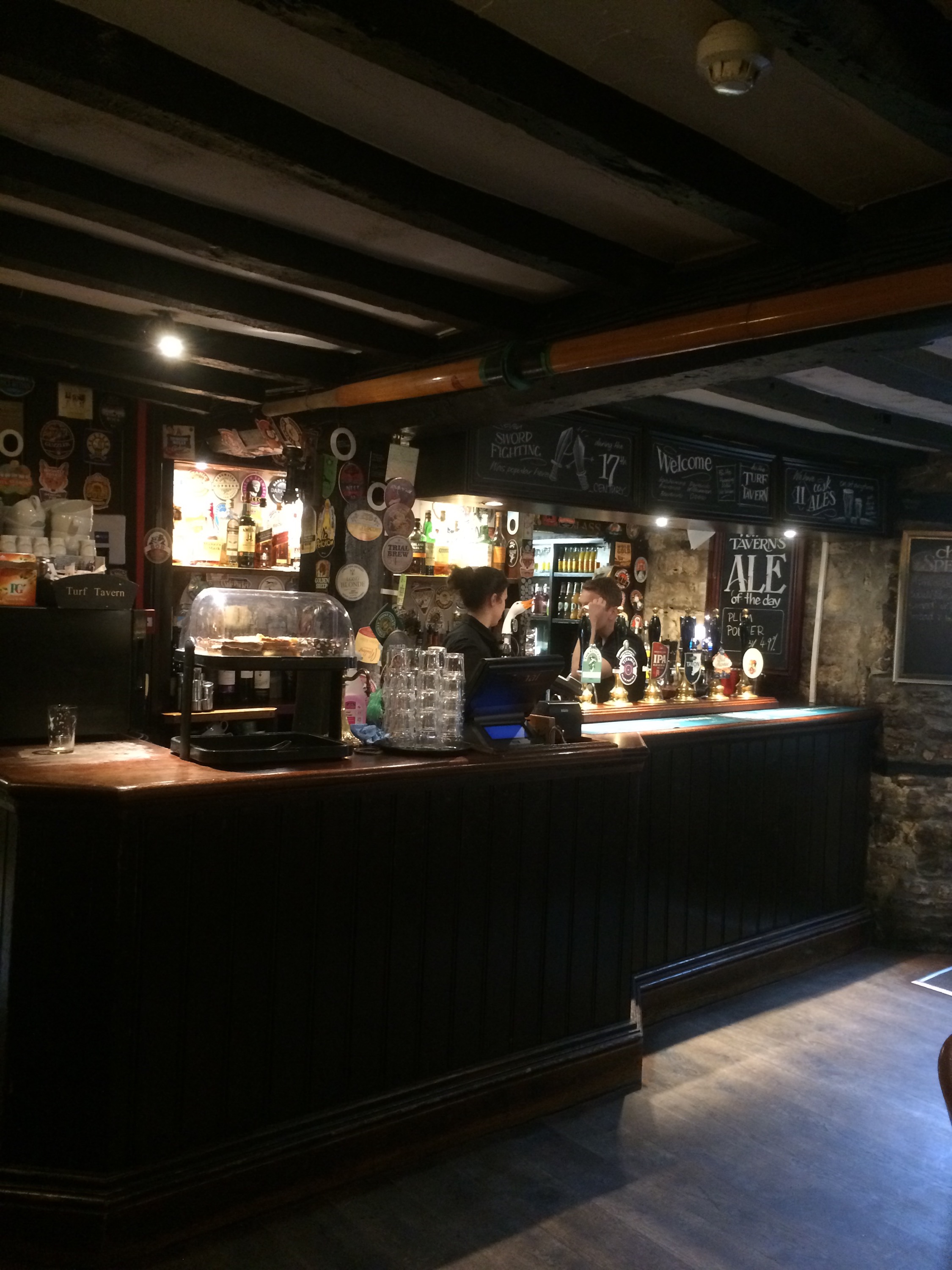 I visited the White Horse, King’s Arms, and Turf Tavern and enjoyed several half-pints of different English ales in each. The White Horse is an interesting place: built in 1551, it’s one of only two pubs in Oxford left “untouched” and has no TVs, no jukebox, and no game machines. When they renovated the kitchen after a fire in 1980, a witch’s broom was discovered concealed in a wall. For fear of superstition no one would touch the broom, so they simply left it there and boarded it up again, where it remains to this day.