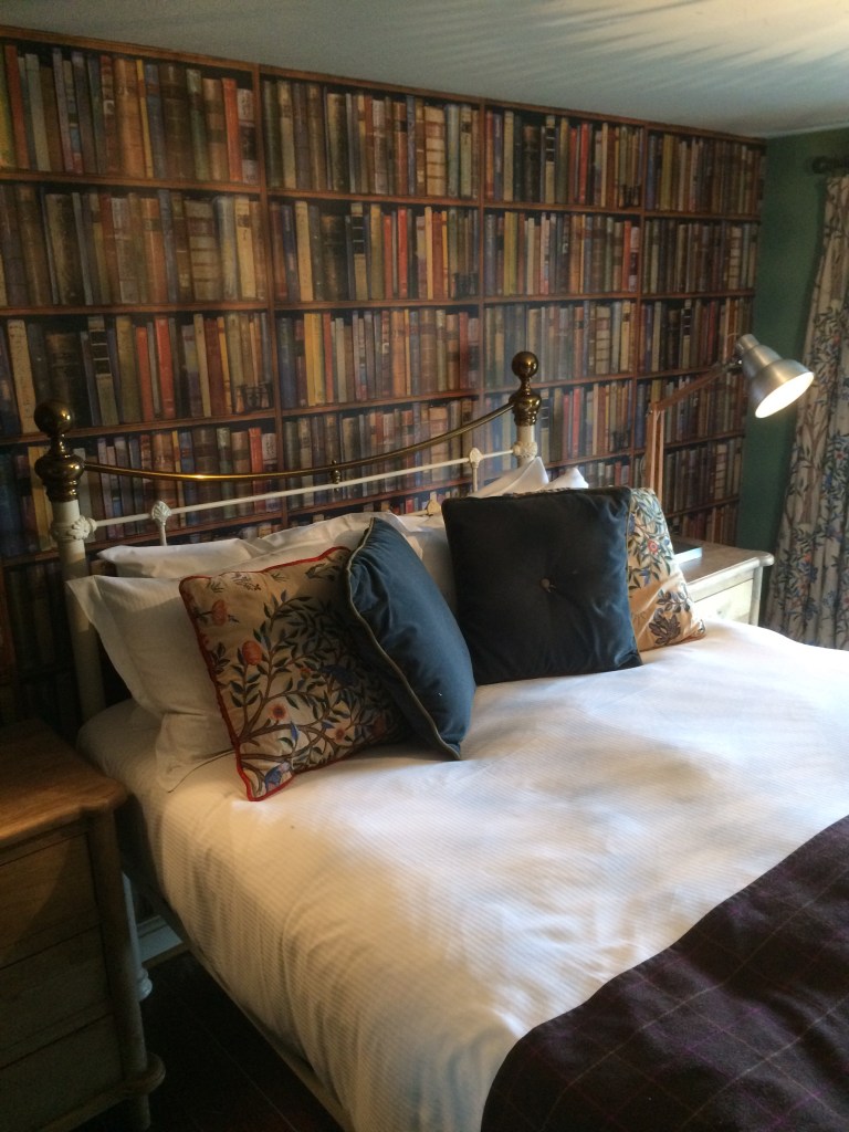 The pub is part of the Fullers brewery chain. There are 12 guest rooms and mine was #2 – The Sir Christopher Wren room. Wren was a successful 17th Century architect. Note the painted books and bookcases behind my bed.