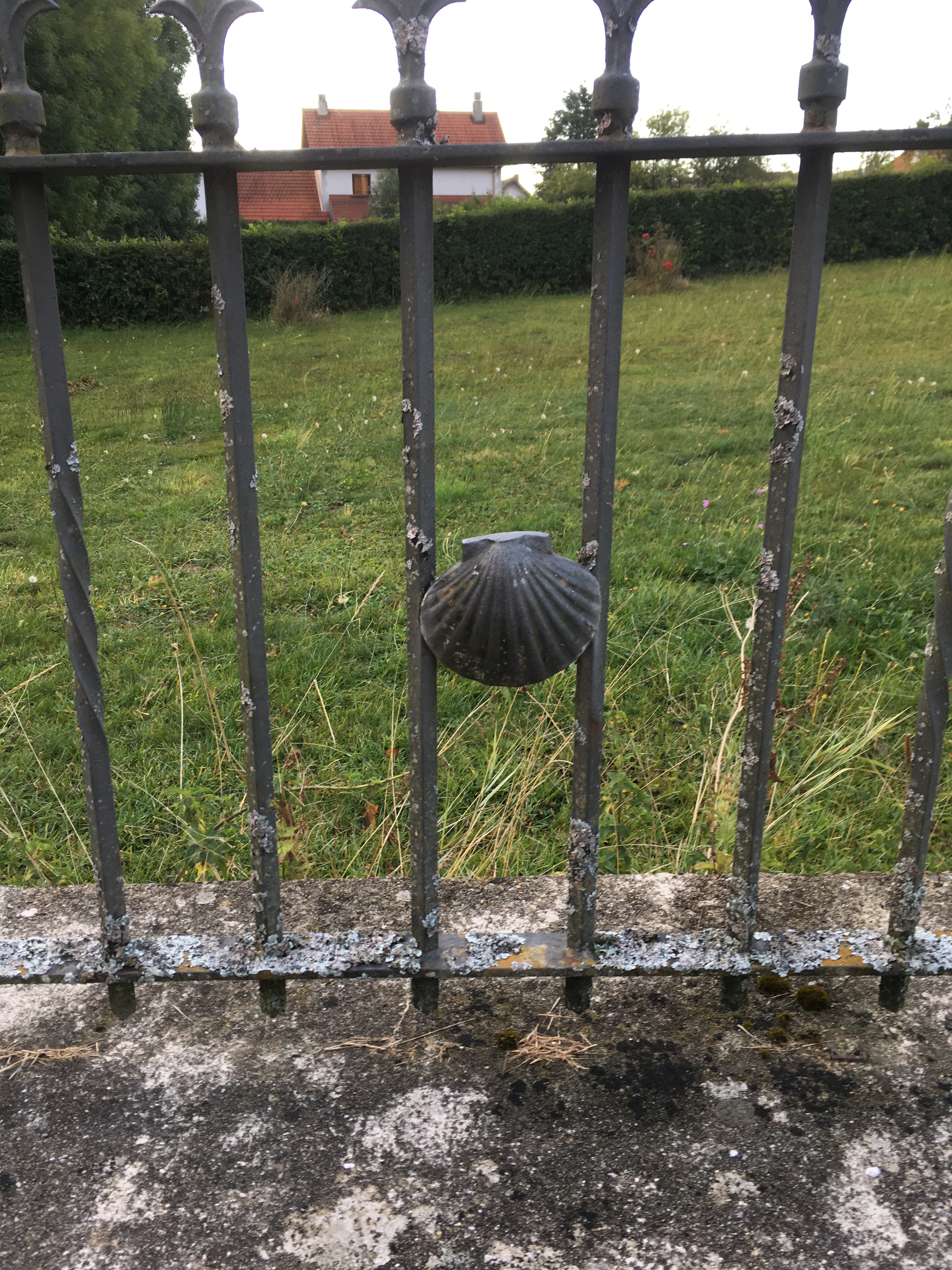 This is one of the markers that guides us as we go along. There are also a series of painted yellow arrows. They give you confidence that you can always find the Camino route.