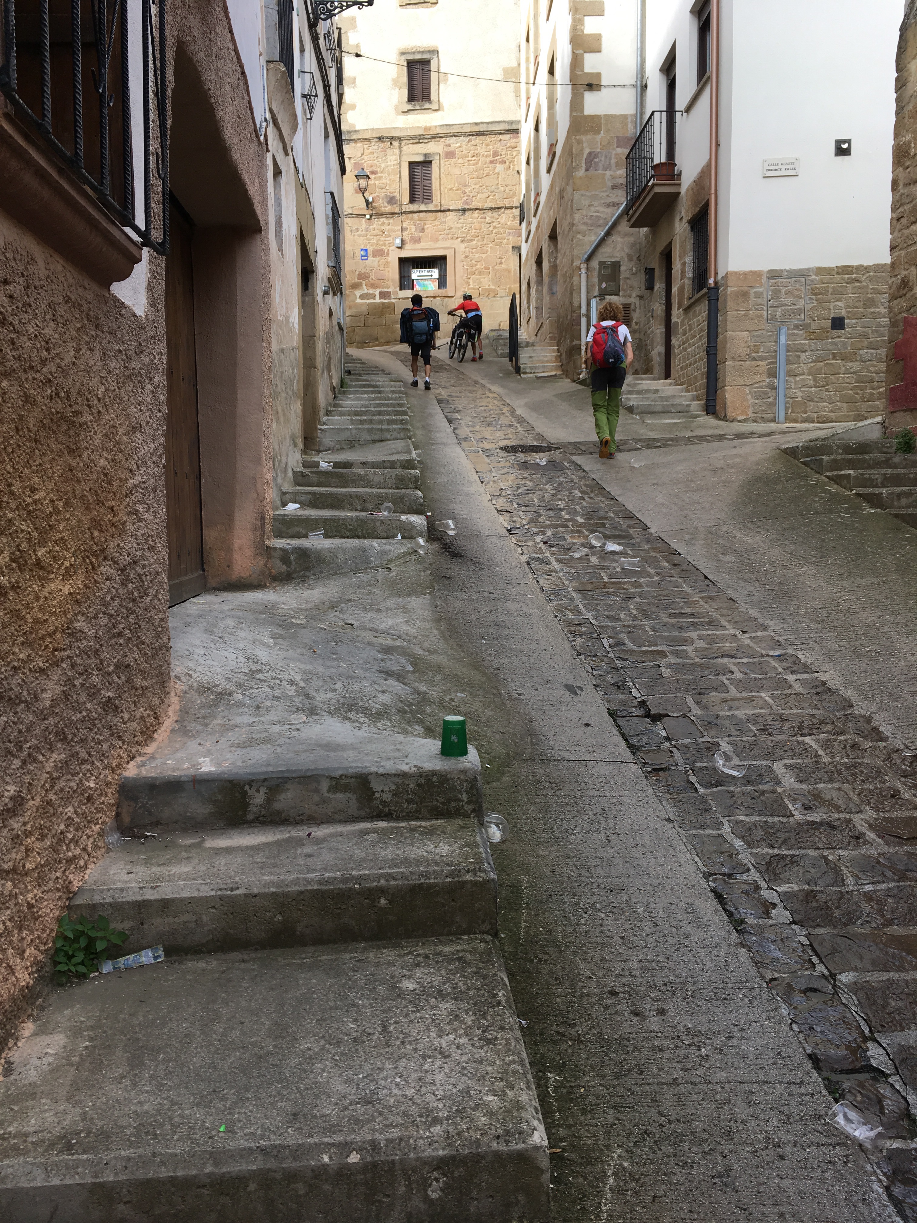 The Camino also takes us through “hill towns”, up and down their incredibly steep streets. Pity the poor bicyclists and I saw one lady struggling with a regular piece of airline luggage on wheels! I have no idea how she negotiated the path.