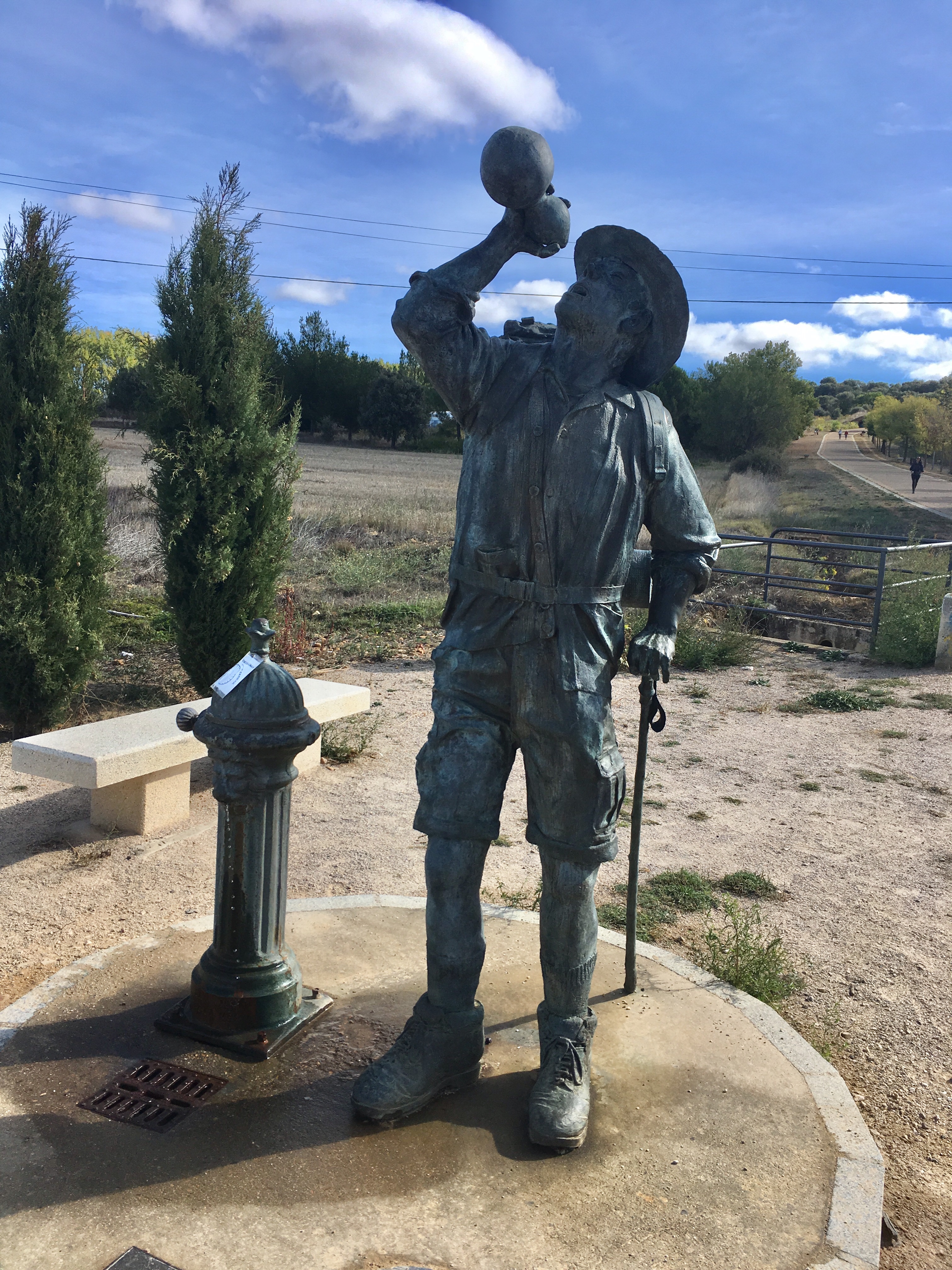 At the foot of the hill, I saw this statue celebrating the pilgrim and the region’s wine industry: