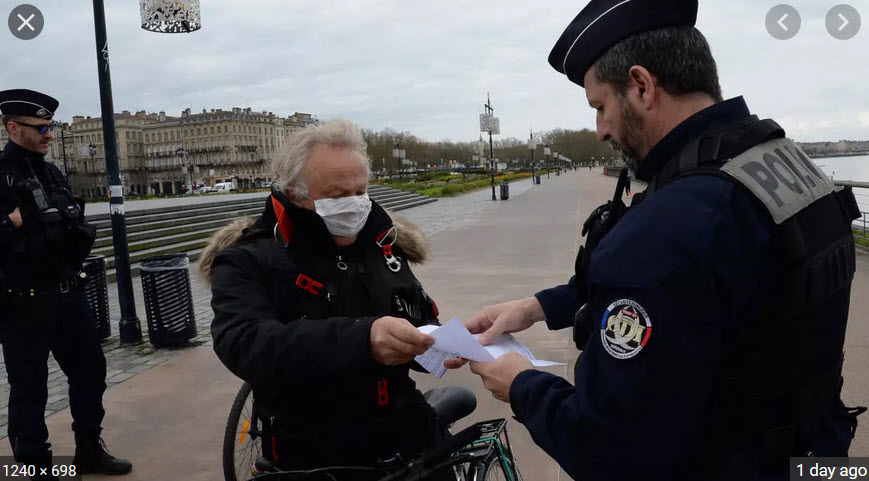 They say 100,000 police and security officers across France have been mobilized to stop and interrogate anyone found on the street or at roadblocks about why they’re not at home. There’s an official form you can download and print that describes the five acceptable reasons for being on the street (grocery shopping, going to doctor, etc.) and you must show this form if asked. Failure to do so can result in fines up to €150. In addition, France closed its borders to any non-citizens or non-residents trying to enter.