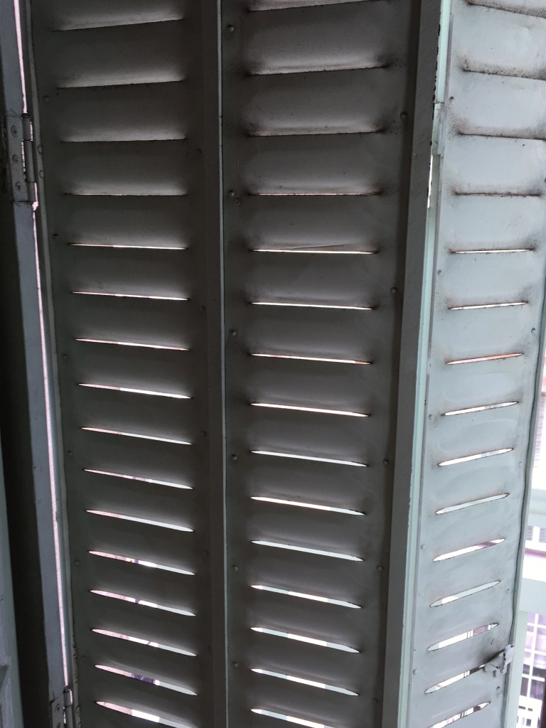The downside of these shutters is that they’re steel and you can pinch your finger when you’re closing them if you’re not careful. They also look like they’re quite a maintenance chore when it comes to periodically cleaning and repainting them.