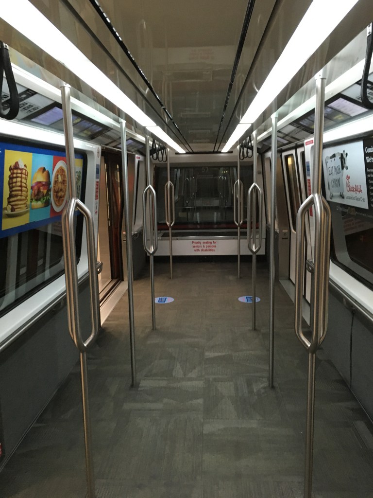 I proceeded downstairs to the famous Plane Train shuttle to go to my domestic flight terminal. This is a system of slick, four-car trains and there was no one else on the platform. When the train arrived, I had it completely to myself; no one else in any of the cars.