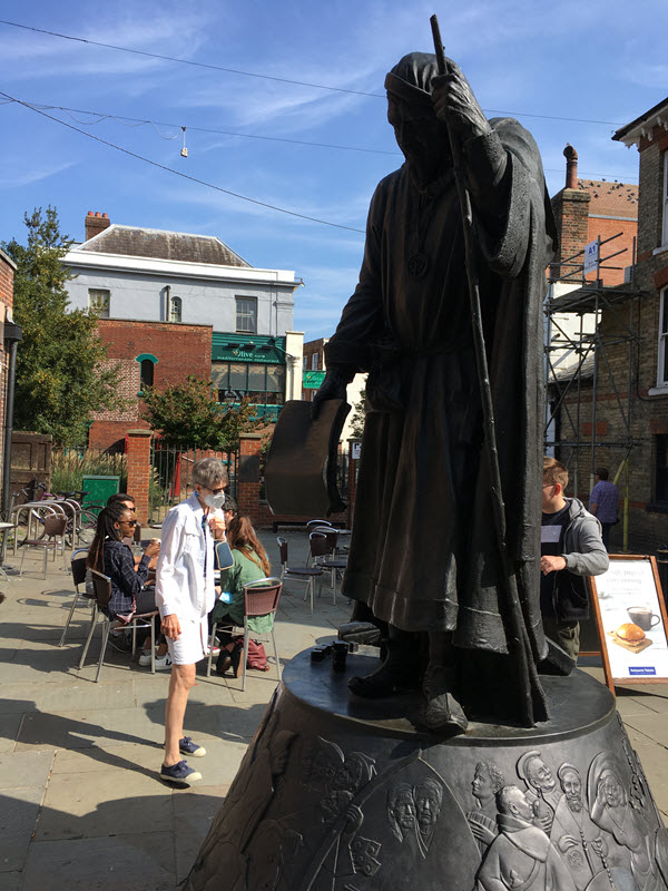 Like many High Streets, this one is pedestrianized and features Tudor timber-framed buildings, banks, souvenir shops, clothing stores, pubs, restaurants (including McDonald’s and Burger King), and a whole lot of “For Lease” signs. The virus restrictions have been hard on small businesses here, too.