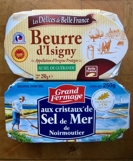 Specifically, the butter that comes from the Brittany – Normandy area and has sea salt crystals embedded in it. Oooh la la!