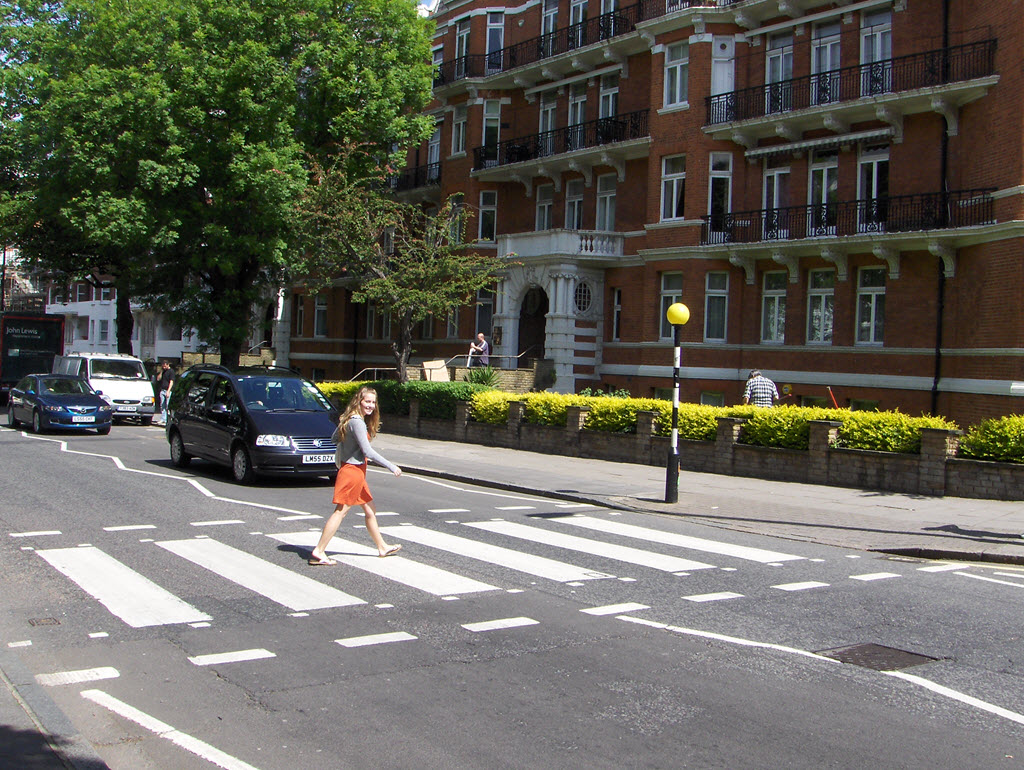 In England, a “Zebra” crossing like this requires traffic to stop for pedestrians (which is not the case for many other types of crossings) and so the antics of visitors recreating the album cover are constantly annoying to local drivers.