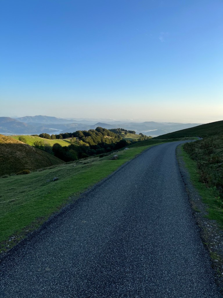 Crossing the international border from France into Spain on foot was a little less formal than, for example, it is at the airport. There was a sign and a “cattle guard” (one of those grills in the ground to keep cows from passing) and that was it. A very refreshing change from the requirements of the last few pandemic years.