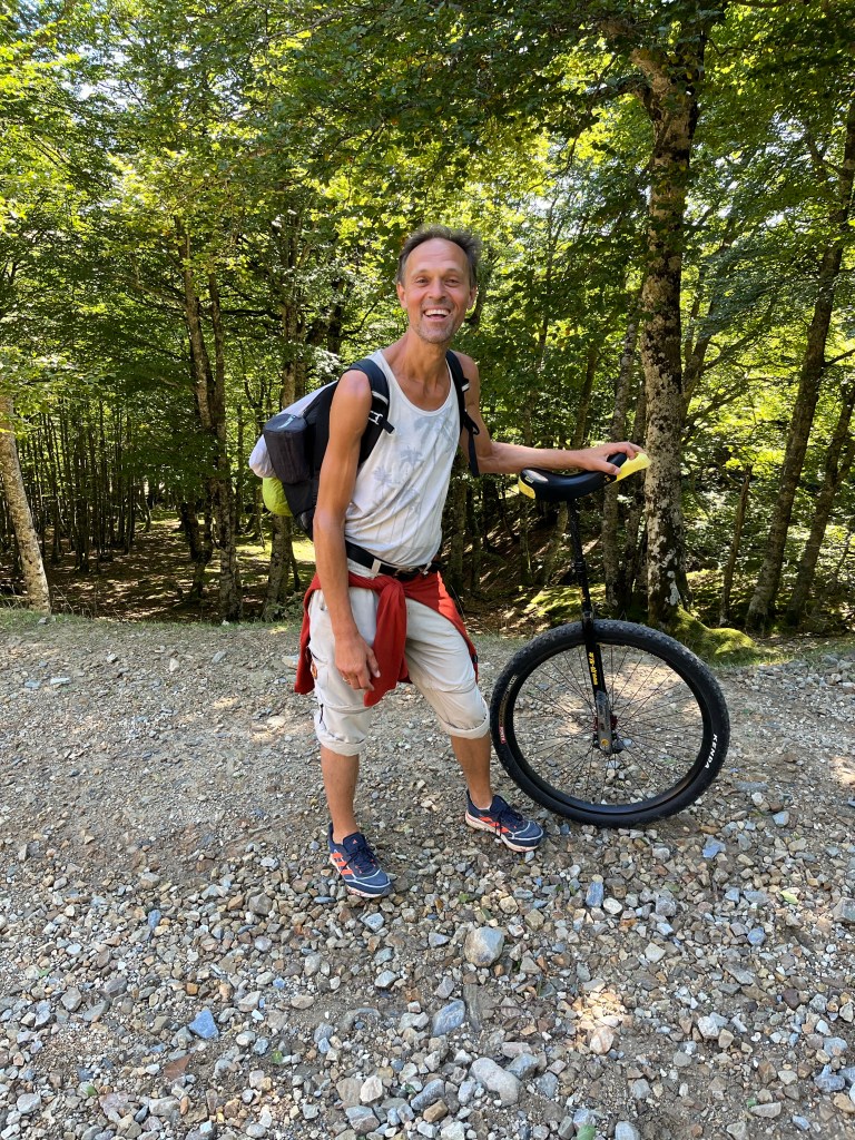 Near the highest point of the day, we encountered the pilgrim shown above, with his unicycle! That was a “”first” for me.