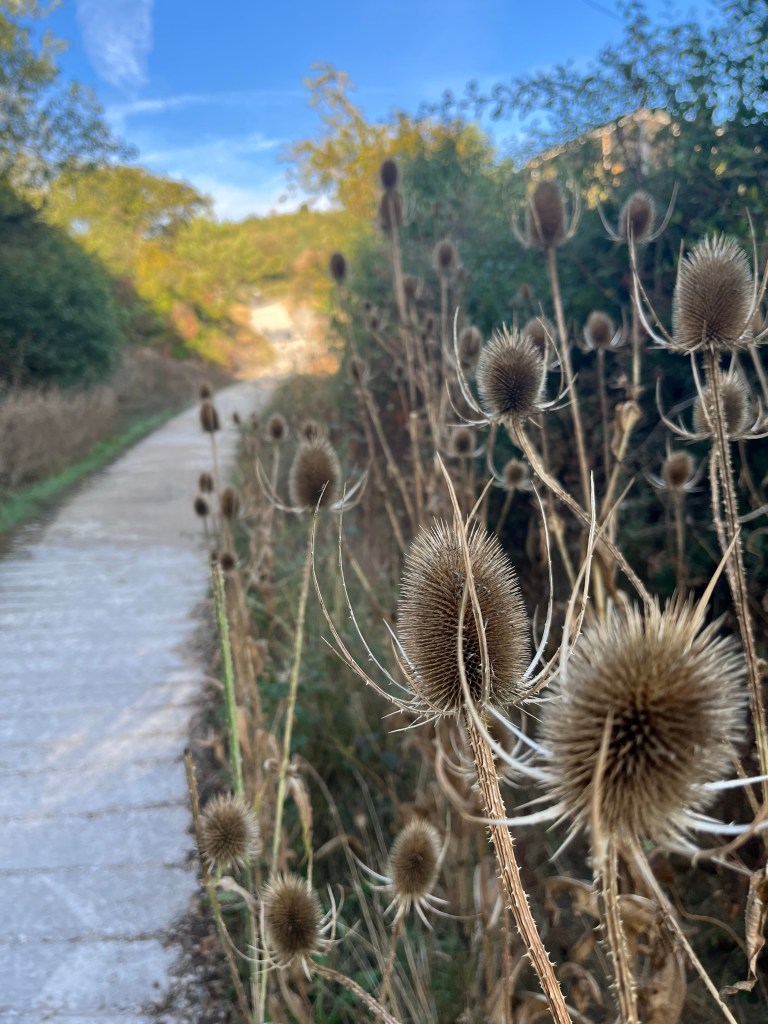 The fields are pretty brown now, what with the drought and unusually hot weather. The path had a lot of brown deciduous leaves littering it and other plants were dried out too.