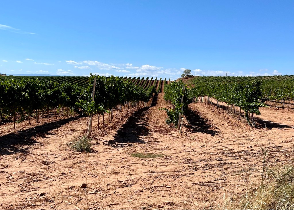 I passed by the Irache Monastery’s Fuente de Vino: a couple of spigots in the wall of their winery offering free wine to passing pilgrims. A gaggle of young folks was excitedly helping themselves, but it was 10:30 am and a little early for me.