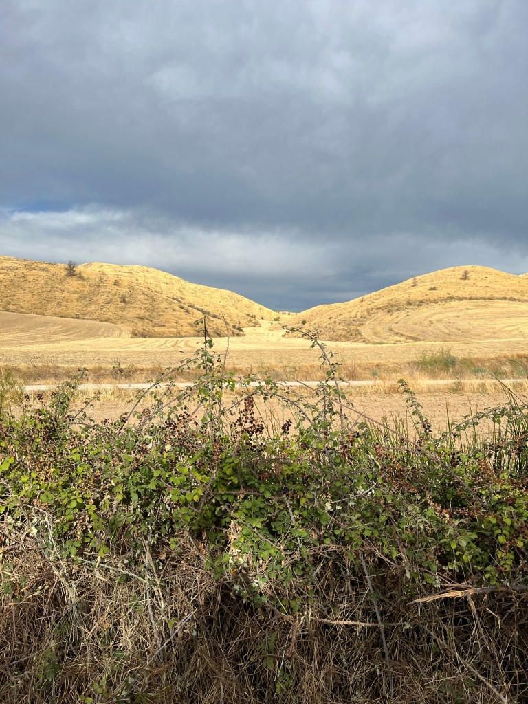 Today’s route was 12 Kms, without any towns along the way. The Brierley guidebook indicates a spot where a cafe movil (food truck) can usually be found along the Camino but it’s not something you can depend on. It’s smarter to bring along some food, just in case. Which is what I did this morning and, sure enough, no food truck. However, some magic of the downhill terrain or my deep desired to get away from Oasis Trails or something, got me to Los Arcos in very quick time – about three hours.