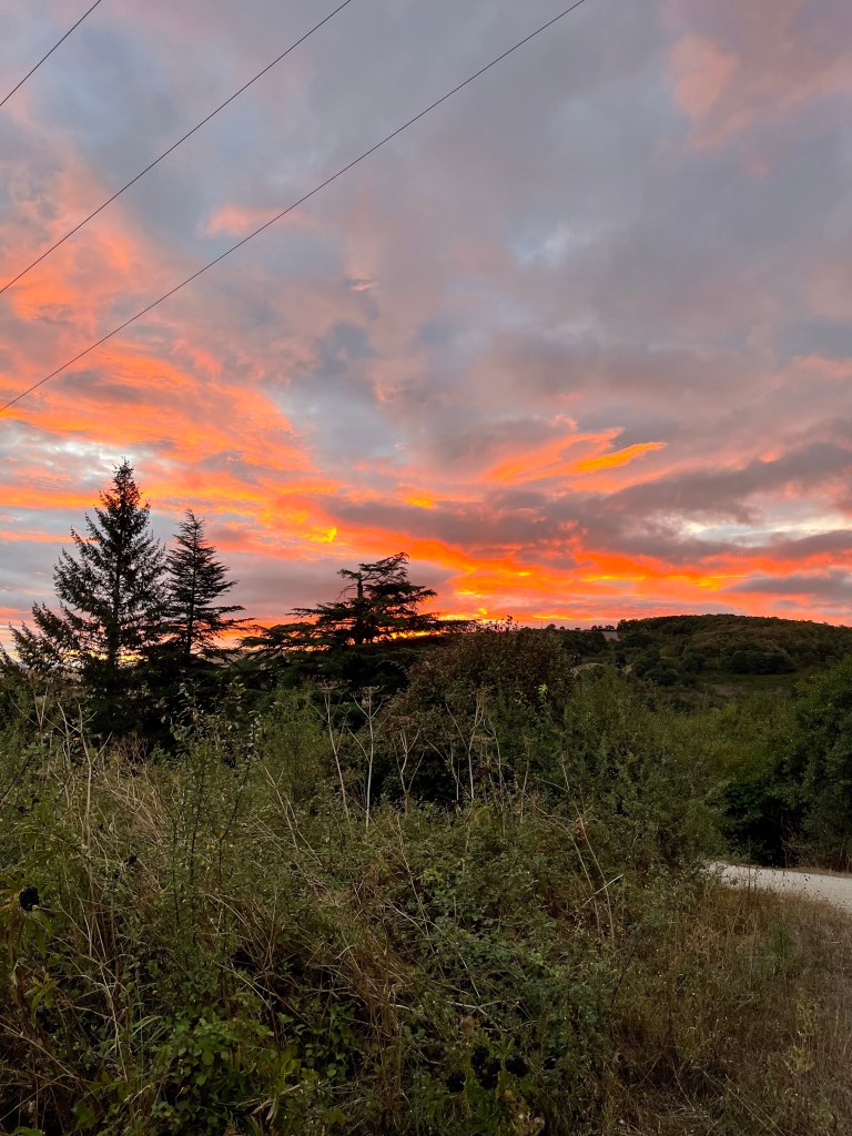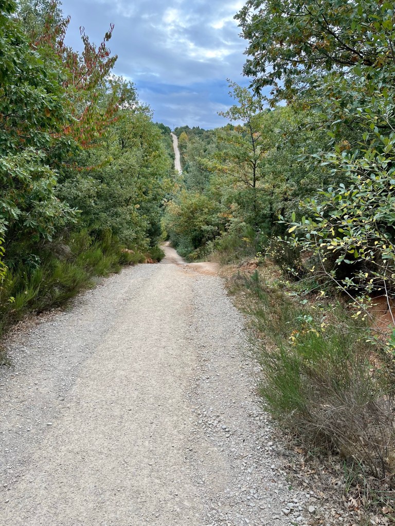 I remembered from my 2019 Camino that there was a climb out of town, but I’d forgotten how long and relentless it was. After about 45 minutes of steady uphill walking, I finally reached the point where the trail flattened out through the woods. Luckily, the weather was cool and partly cloudy, which made the climb easier.