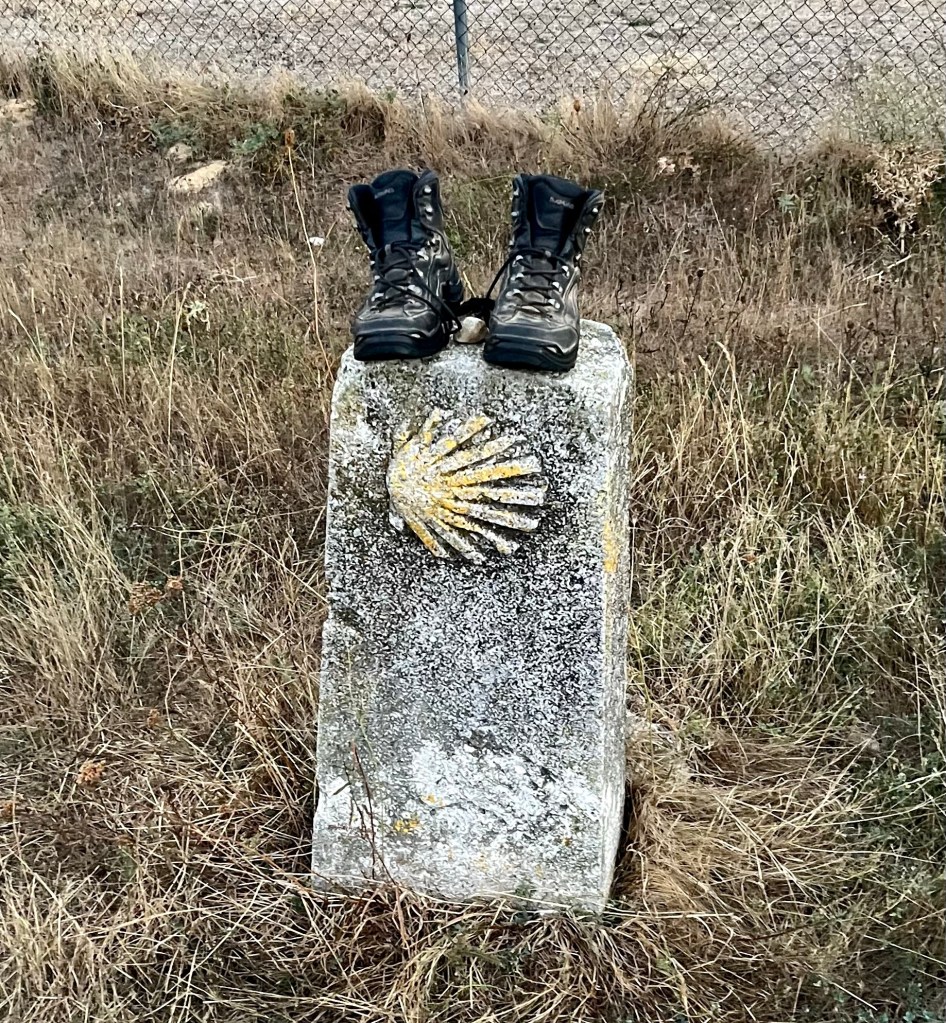 A couple from Texas that I met the night before over cocktails, Rob and Lauren, told me that Rob’s hiking boots had fallen apart in the previous week. So they’d ordered a new pair, to be delivered to them in Burgos. When we spotted these boots along the trail, I got a laugh when I asked Rob is they were his new pair, special delivery.
