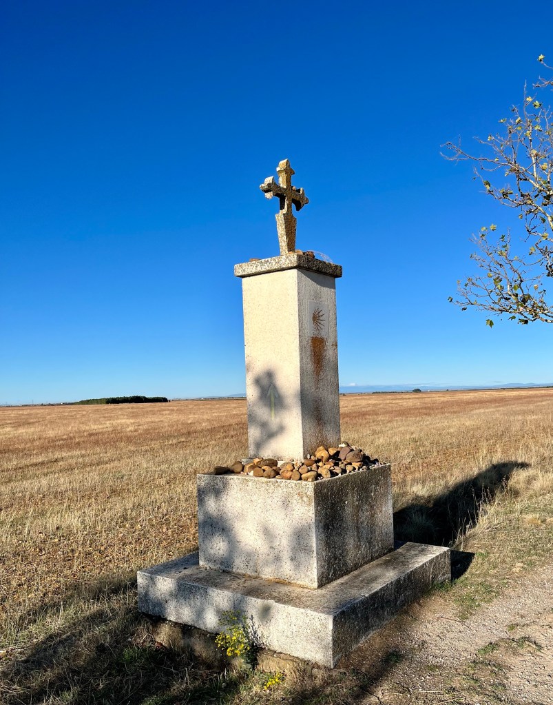 I finally arrived at the point where there’s a cross commemorating a 5th century bishop, with a view of Astorga ahead. So close, yet it would be another hour before I got there. I was keeping my eye out, however, for two things I remembered from 2019: