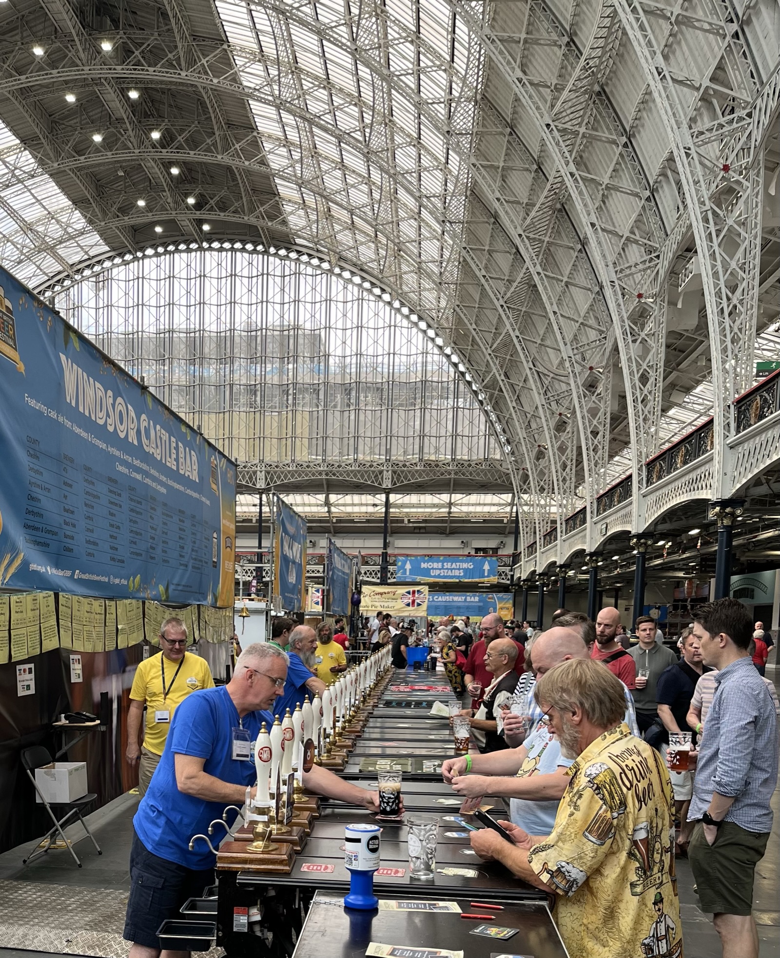 First, you must understand the event’s organizer: CAMRA (the Campaign for Real Ale). CAMRA is dedicated to the British beer industry (though it’s a private organization and is not owned by any huge brewers) and the preservation of the English pub. That last bit is important, because one UK pub goes out of business every single day. Some of that is down to the pandemic, but it was happening before COVID, too, as a result of government regulation and predatory industry practices. CAMRA helps pubs survive and lobbies the government extensively to prevent beer taxation. Putting it into an American context, I like to think of it as the “NRA of Beer”. Yes, I have been a member since 2008, when I first attended CAMRA’s famous Reading Beer Festival.